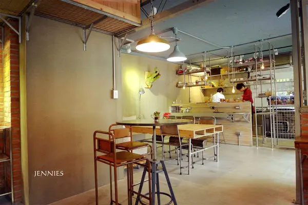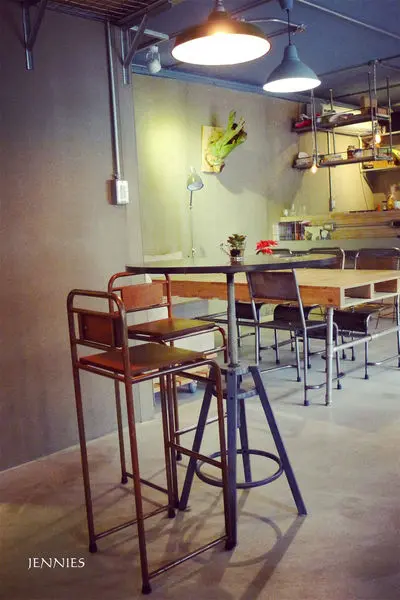 一開始走進這家咖啡店感覺滿特別的,雖然走的是金屬工業的風格,但利用了木材與磚塊的混搭及窗前照映進來的陽光襯托著綠葉使整個用餐空間形成了獨樹一格的迷人風采。