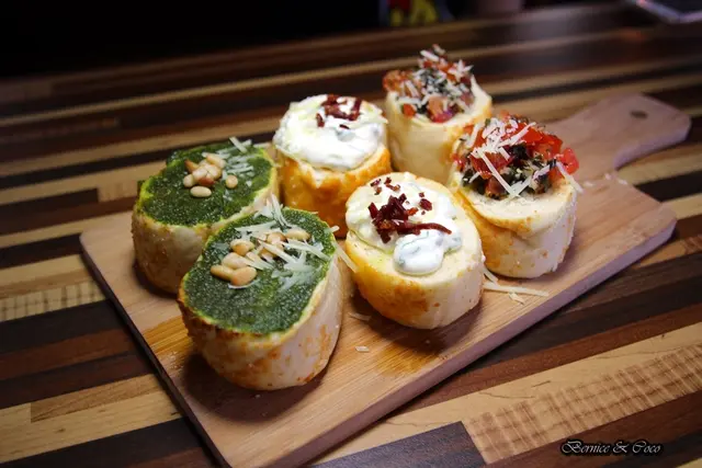 軟法的乳酪麵包上面抹上3種醬料更添食趣
