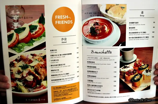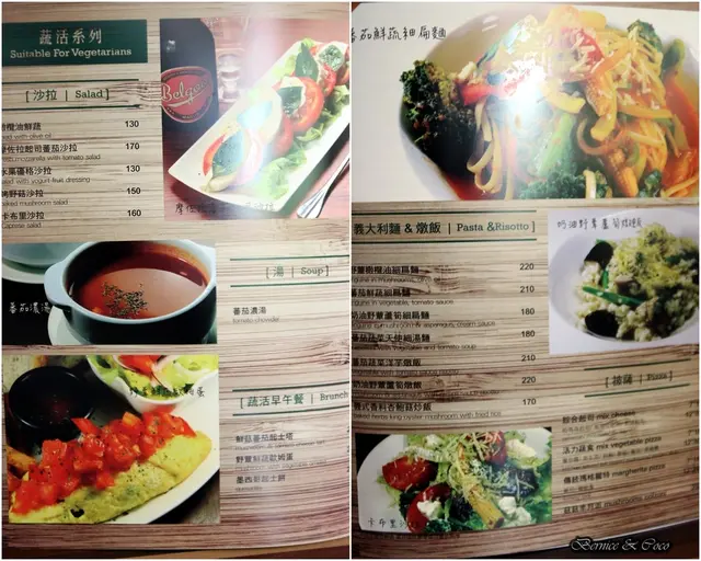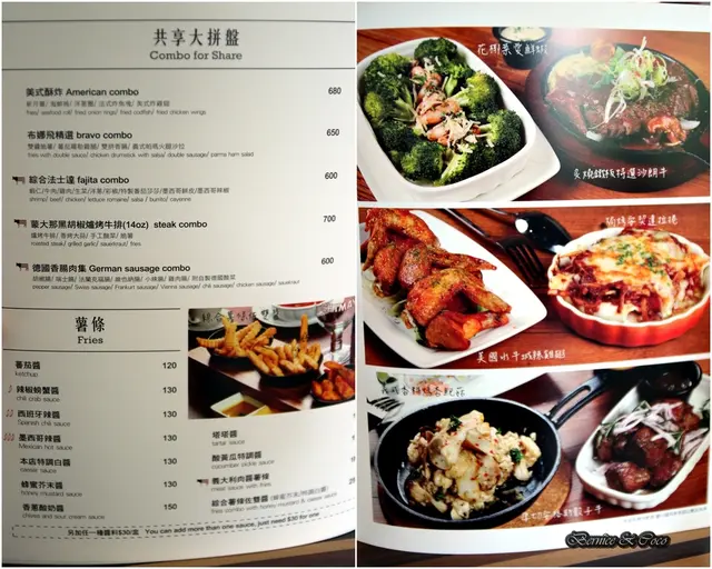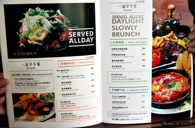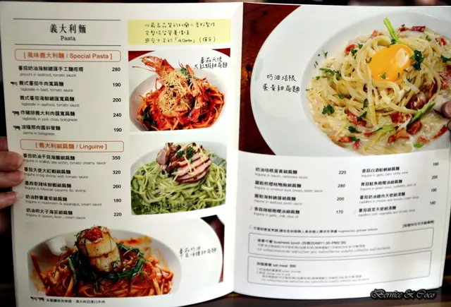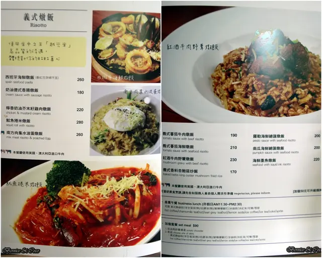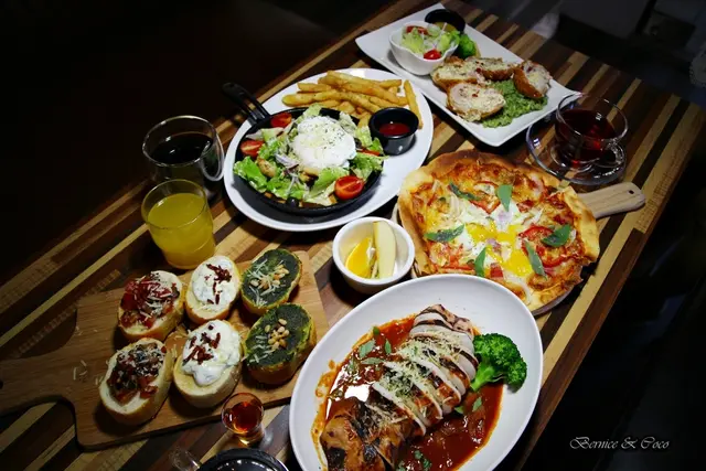 餐點的品項很多有早午餐、義大利麵、燉飯、排餐、適合下酒的各式拼盤