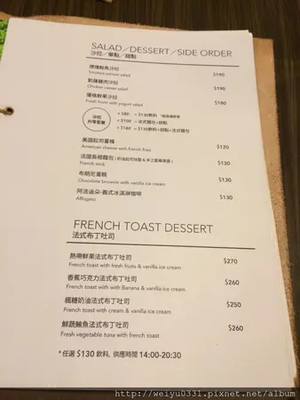 +160=130元飲品+沙拉/法式麵包/甜點(三選二)