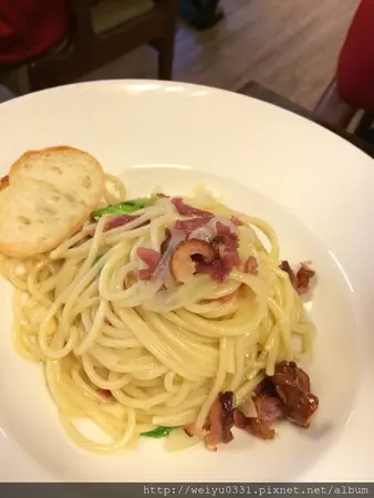 義大利麵本身煮得很有嚼勁,醬料的部分也不會很膩,整體來說這盤麵的分數很高,值得大點!!!