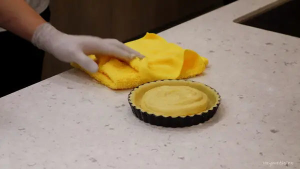 完成之後長這樣,內餡和塔皮中間留了一點空隙,等烤好之後便會完全密合。