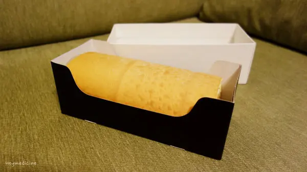 接著是北海道極純鮮乳卷($450)!打開之後可以看到散發金黃光澤的生乳捲在和我招手,趕快將他拿出來透透氣。