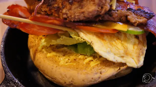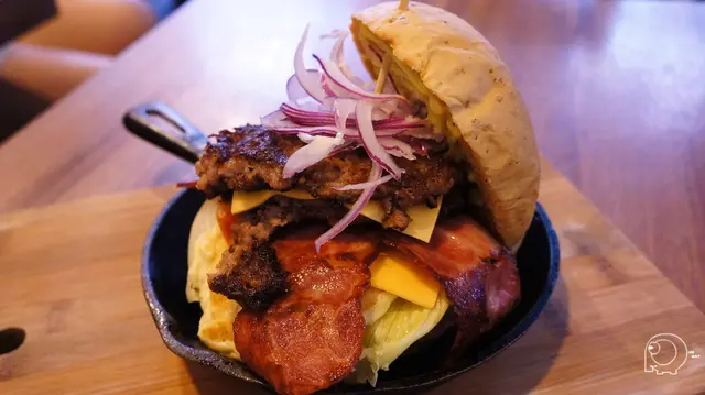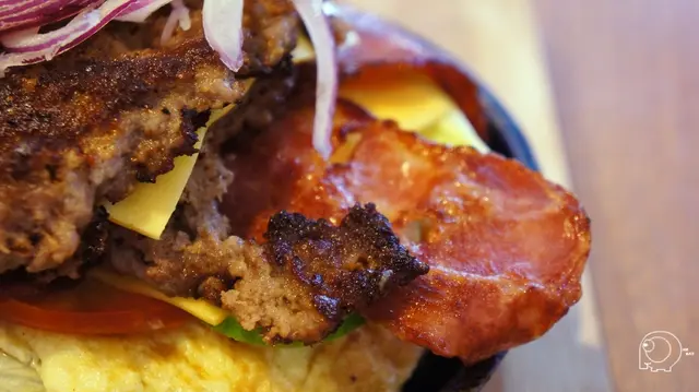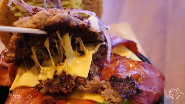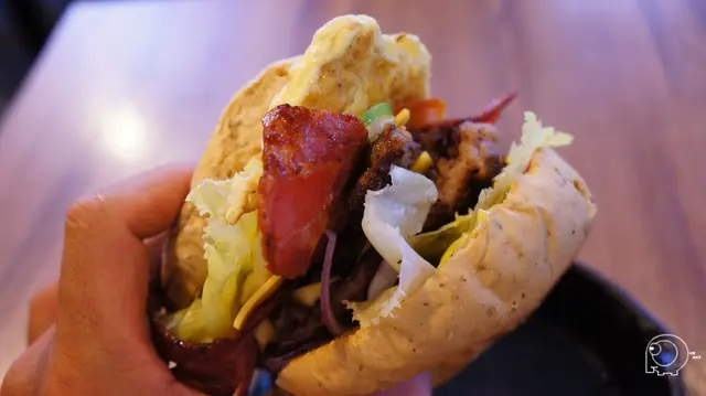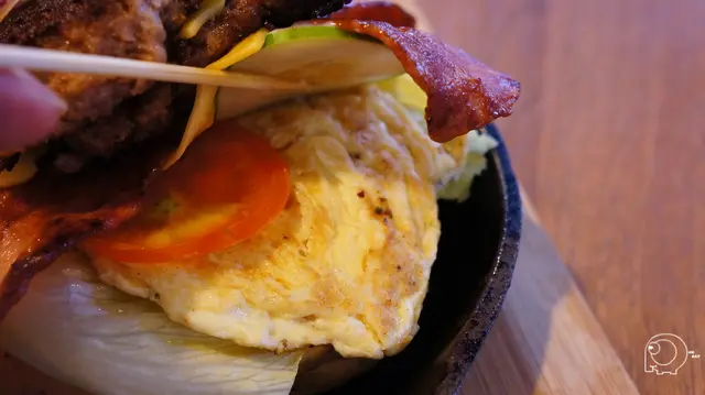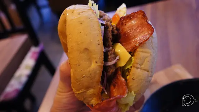 一口咬下培根的香氣搭配著牛肉的肉汁混著起司