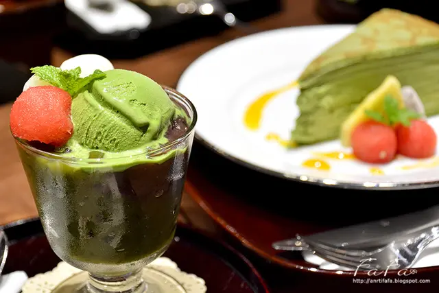 抹茶法式薄餅套餐 NT$450 (含紅豆佐抹茶冰淇淋+煎茶or咖啡)