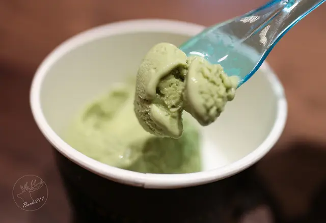 因為今日等待許久且之後我有要事,無法等到茶屋主人回來品嚐到其點茶手藝,於是店家招待我小份的玄米冰淇淋(因為我表示吃不太下所以店家改以小份),一入口玄米茶香濃有味覺上的亮點,不過整體餘韻上來說我還是較喜歡濃抹茶冰淇淋。