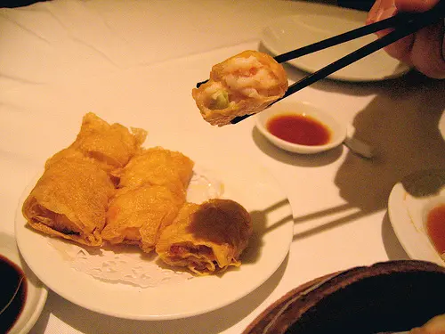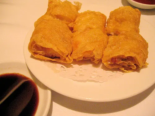 我很愛吃鮮蝦腐竹捲,有看到也會點,但是回台灣以後,不知道踩過了多少次的地雷,到現在還沒有一家滿意的,大多個兒貧瘠瘦小,沒把腐竹炸到起泡酥脆,潮品集的當然也不滿意,內餡調味適當,但是不夠酥,底部還有油。