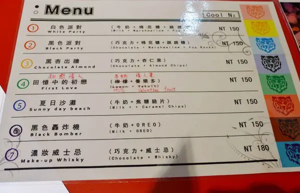 首張是冰品的價目表.冰品種類不多.只有7種.DM裡有中英文.提供外國旅客選擇購買