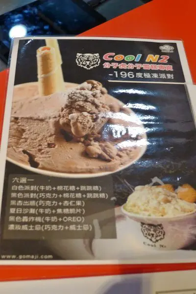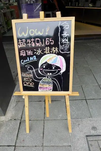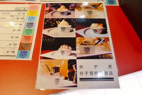 快步閃過炙熱太陽.趕緊衝到分子雪糕專賣店.櫃檯上擺放著4張護貝DM