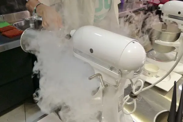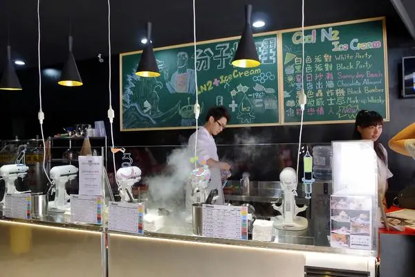 使用-196度C的液化氮所製作的冰品.1分鐘迅速結冰.分子結構不同做出做出的雪糕冰晶粒子小