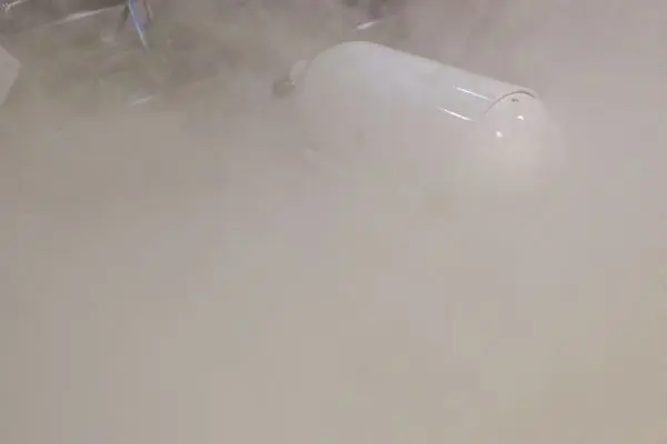 將LN2液化氮倒入牛奶裡面.白煙快速的增加.讓人有種牛奶爆炸了的錯覺.