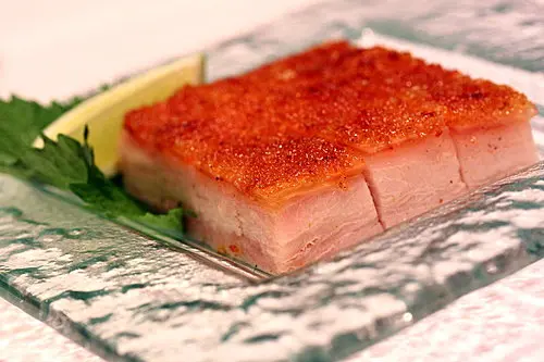 脆皮燒肉磚,皮脆肉嫰,但吃的時候一定要沾上乳豬醬的啦~