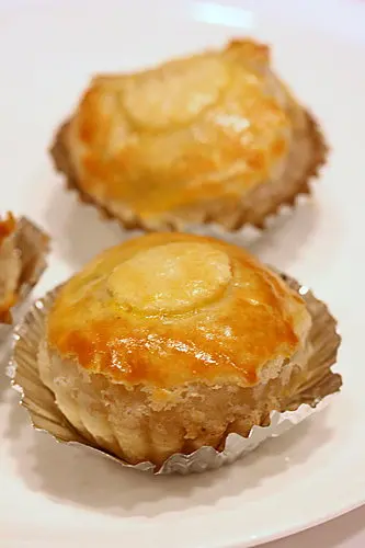 看到那蛋塔皮的層次了嗎??密密麻麻呀~原來這種做法和一般油皮包水皮的做法不同,而是難度較高,但更能表現酥脆程度的水皮包油皮,製作上當然難度更高啦!好吃自然是不在話下的!