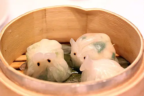 很可愛造型的豆苗餃之類吧,皮很Q彈,口味也挺不錯喔!!