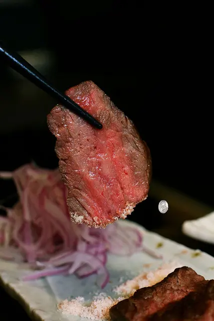 本身就帶有牛肉與燒烤的香氣,無論是單吃或者佐以旁邊的玫瑰鹽都很好吃。