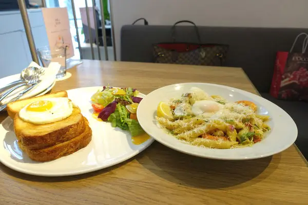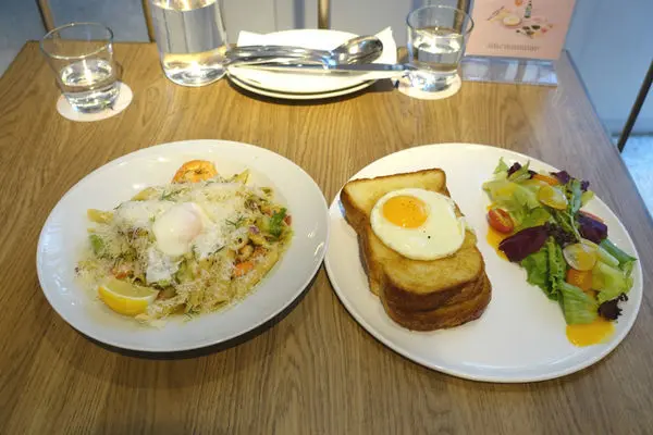 露西選了兩種鹹食+一樣甜點,點餐時店家事先說明無法控制出餐時間~