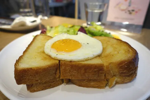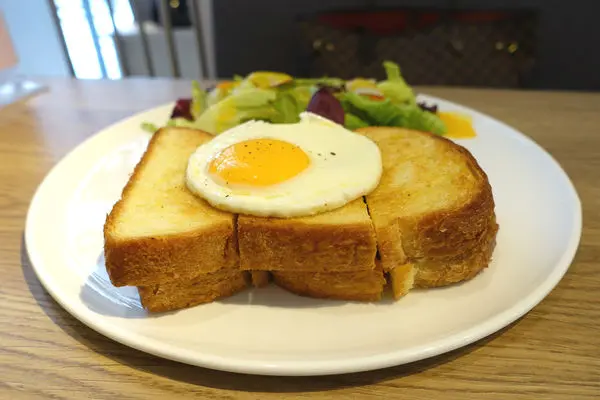 另外太陽蛋本身實在不知道要從何吃起,夾進去三明治裡好麻煩~