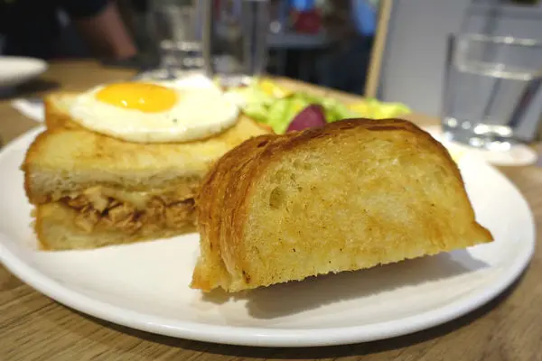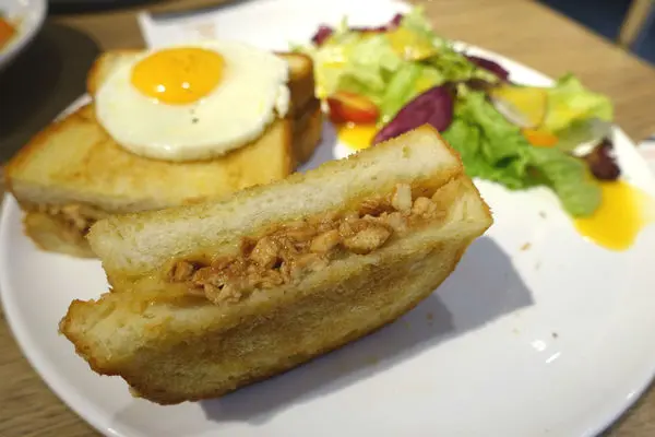 BBQ雞肉奶油脆煎三明治+太陽蛋($230+30);