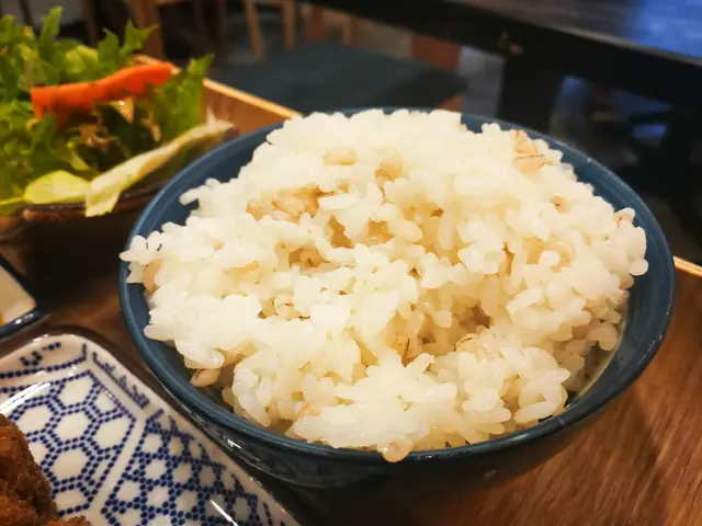 乍牛 炸牛排專賣所附的米飯是越光米麥飯,原本擔心我那挑食的老公會不吃