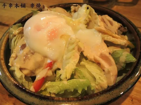 當然是立馬戳破 和下面滿滿生菜和雞肉片攪拌均勻