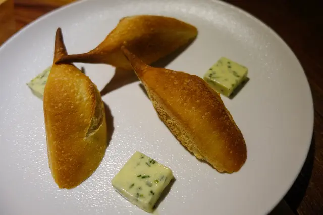 麵包滿好吃的!加入蔥末的奶油塗抹在麵包上意外的合味~