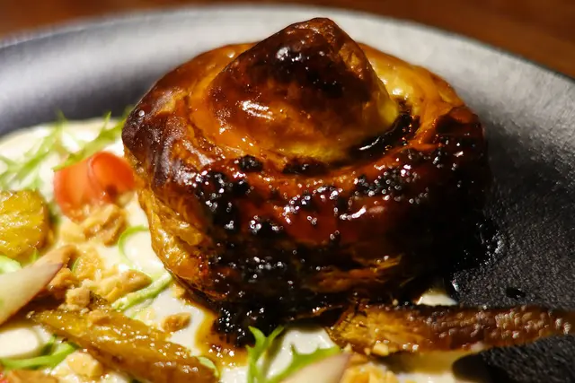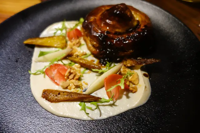 油封鴨腿千層酥佐杏仁蘿蔔泥