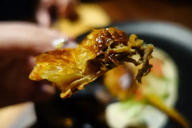 鴨腿可是被包裹進層層的酥皮中!所以吃得到鴨肉香但見不得鴨腿狀阿