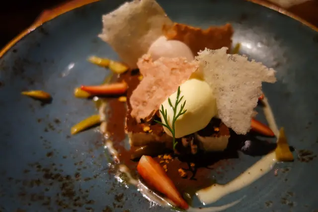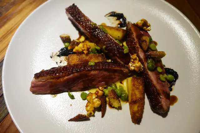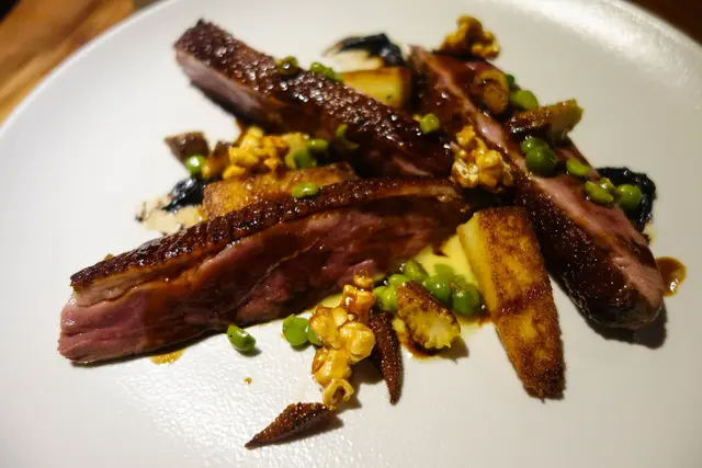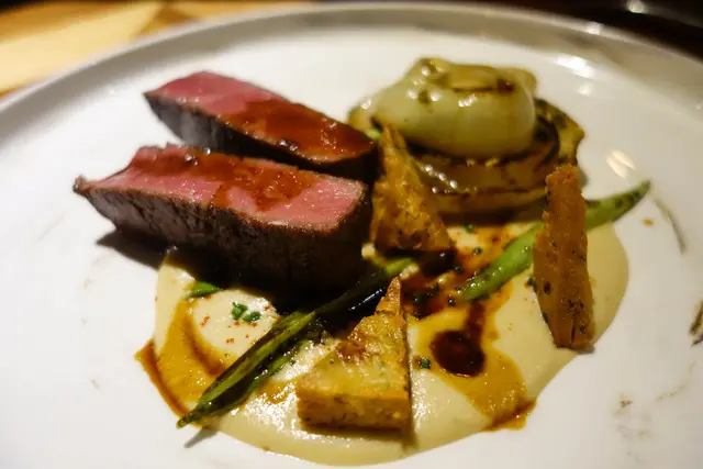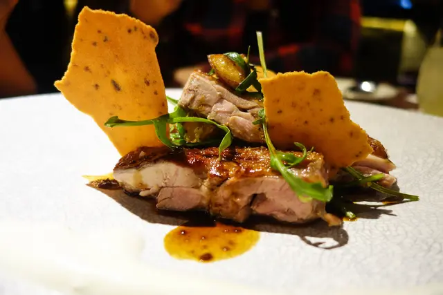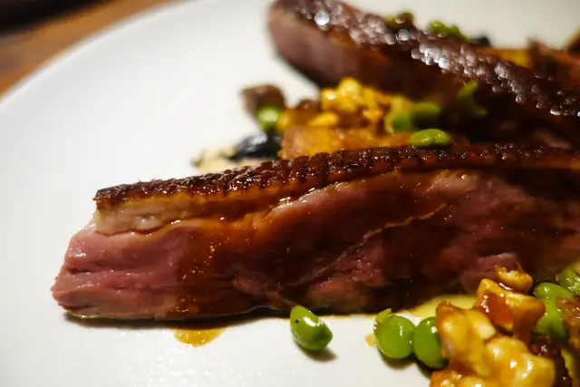 採用法式烹調手法"玫瑰"鴨肉熟度大約是3-5分熟