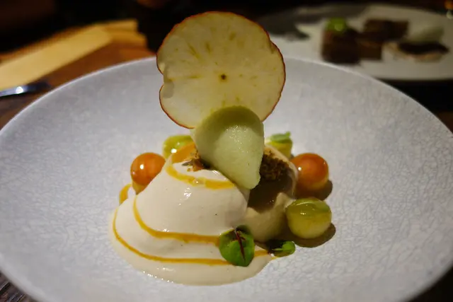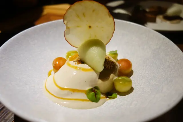 一旁小小顆的醃漬蘋果,吃起來酸度相當的高!