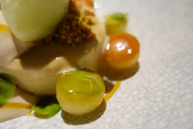 白色橄欖型冰沙則是將新鮮薄荷葉浸泡牛奶,吃起來薄荷味並不重反而偏向奶香比較明顯