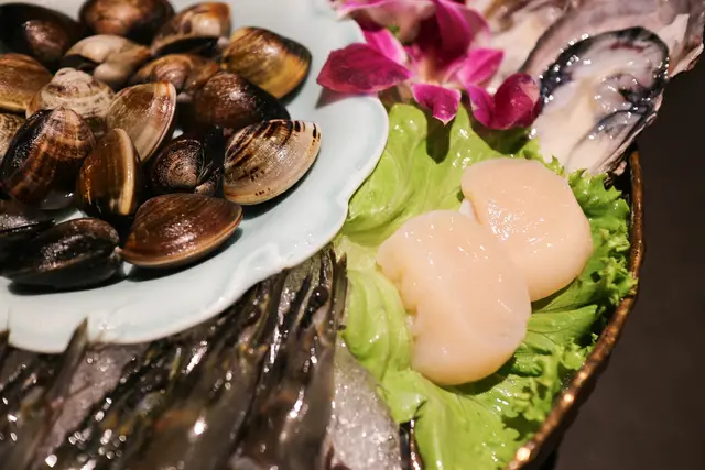 雙人份的海鮮鍋包含了鮮蝦/鯛魚片/蛤蜊/牡蠣/干貝/中捲