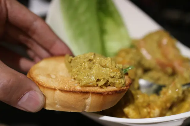 特調黃咖哩醬搭配烤過的軟法國麵包!麵包鬆軟中表面微微酥脆