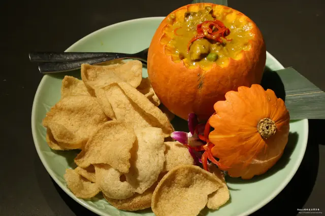 南瓜的甜可以些微中和了紅咖哩的辣度~
