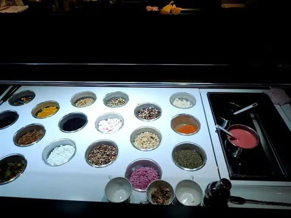 可以選擇不同的糖衣口味 然後配料 淋醬 會再幫忙裝盤上桌