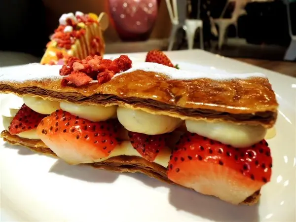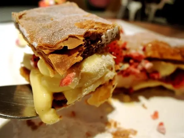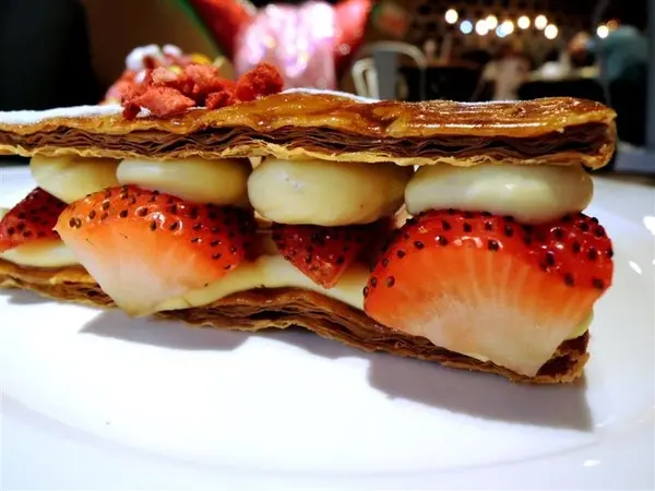 很正統的再兩片派皮中 夾入新鮮草莓以及蛋奶醬