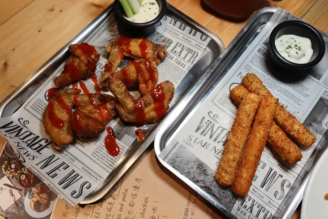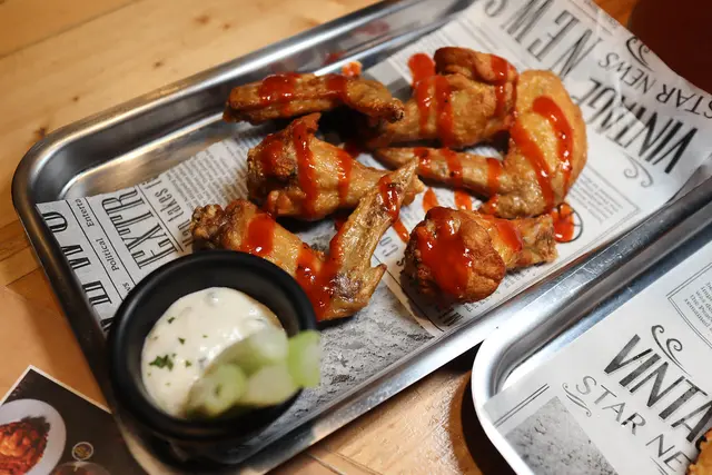 必點水牛城嗆辣雞翅:雞翅不額外裹粉,吃得到雞皮卡滋卡滋的酥脆口感
