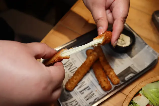 起司條 吃起來表面酥脆,可以拉得長長的起司是不是很邪惡呀