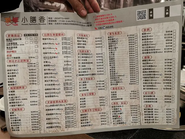 以上為小膳香成都麻辣火鍋菜單提供給各位參考