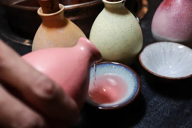 今晚誰來陪我喝花酒?我們點了一壺桃花酒來喝喝看,老闆說希望喝了桃花朵朵開