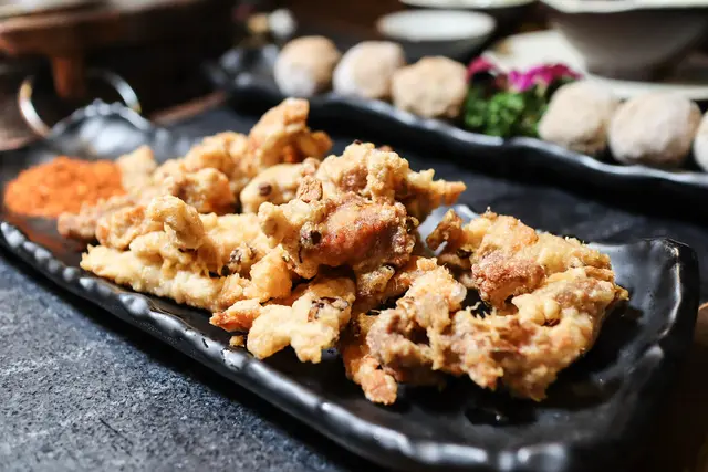 在等候火鍋中食材煮熟的時間,點上一盤現炸酥肉先滿足一下饑餓的胃袋
