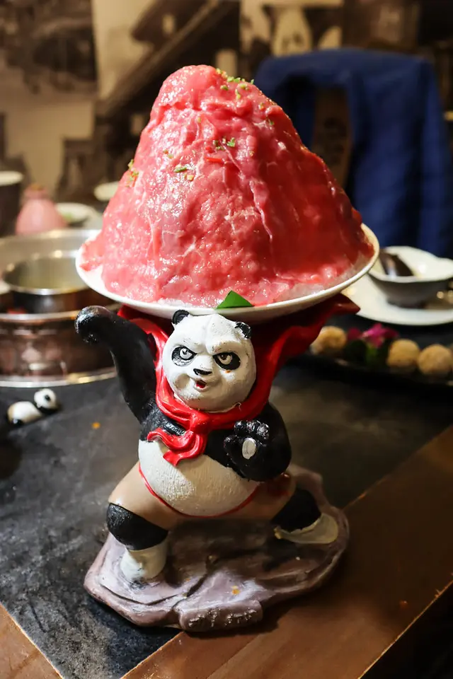 嘿嘿嘿~四川的招牌動物貓熊又出現了!功夫熊貓頂著我們指定的雙椒牛肉來囉~