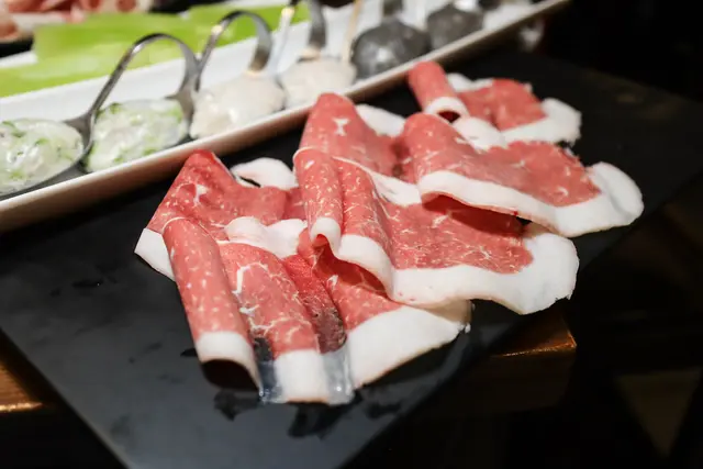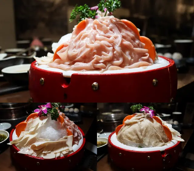 鮮毛肚:片成薄片的毛肚與我們一般我們常吃切成厚片條狀的毛肚很不一樣喔!