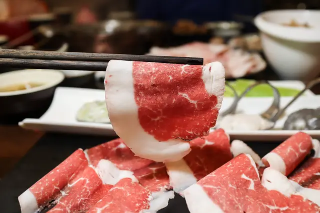 這部位的牛肉吃起來是有咬勁的,周圍的白色脂肪層經過汆燙後吃起來是脆!