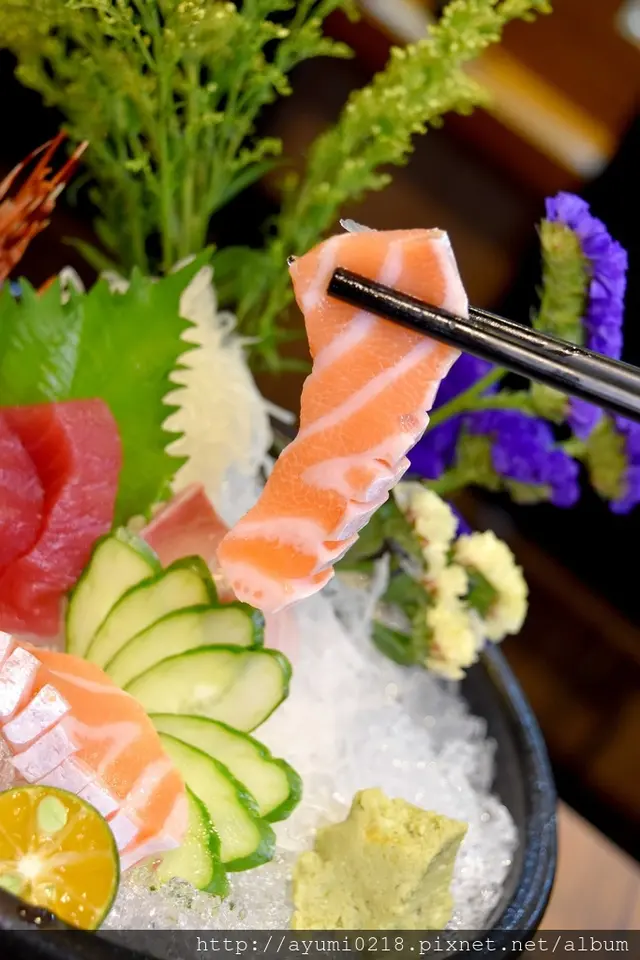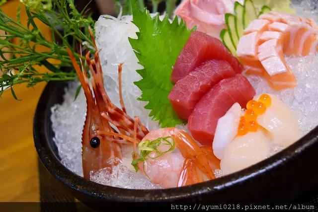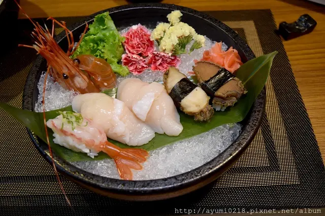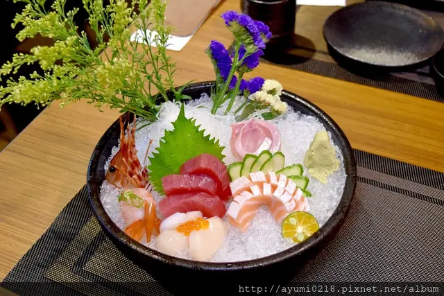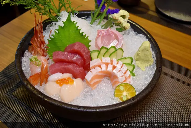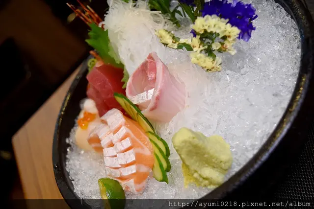 除了漂亮的擺盤外.新鮮的芥末泥.厚度剛好的生魚片 透明的紅甘.吃來脆甜