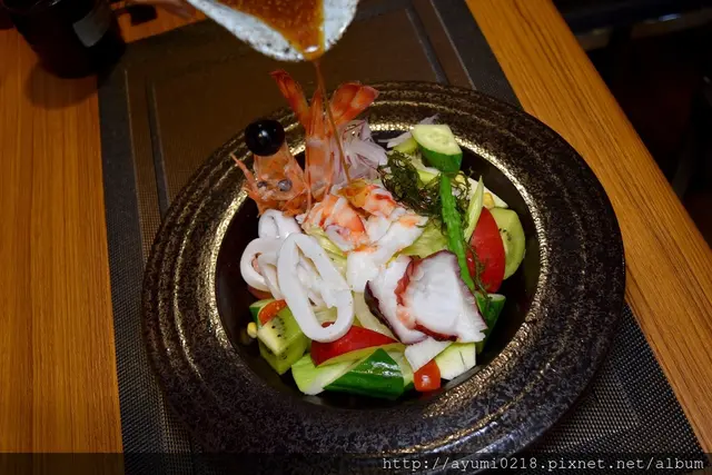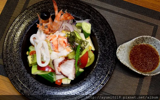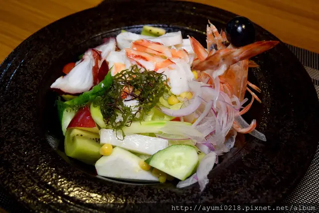 大推薦三川的沙拉.裏頭的水果爆炸甜(尤其是奇異果)奇異果/番茄/芭樂/小黃瓜/洋蔥/美生菜/蘆筍/海菜>非常新鮮海鮮也表現得很優秀....除了單價上不是親民.其他都很滿意