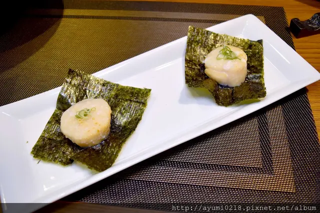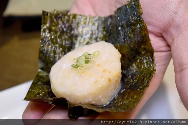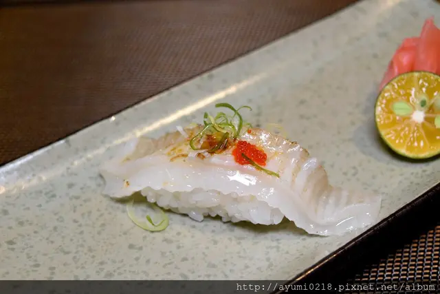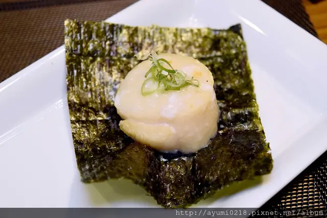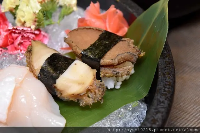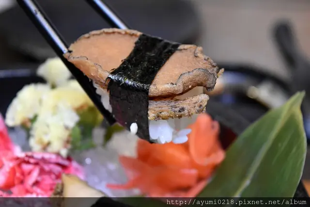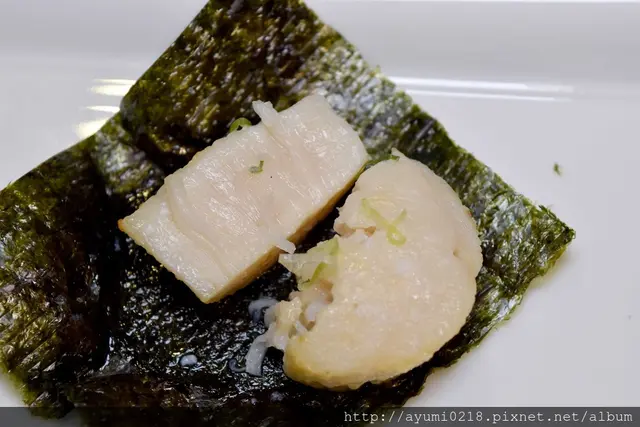 鮑魚很彈牙.與海苔及醋飯搭配.沾上薄鹽醬油意外好吃