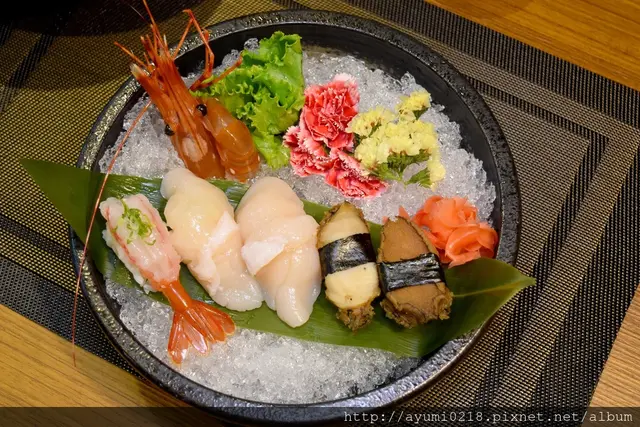 牡丹蝦X1/鮭魚X2/鮪魚X3/紅甘X2/干貝鮭魚卵X2