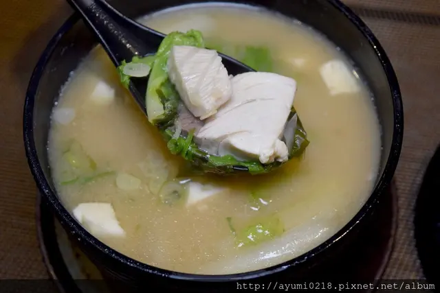 魚肉味增湯140(足以兩人分食的份量)湯頭不錯.不死鹹.還有很多的白菜及海帶芽魚肉是沒有帶魚骨頭的.不擔心梗死XD一共1160+10%服務費今天的份量比較精緻一點.大概7分飽>還可以去附近吃東區粉圓