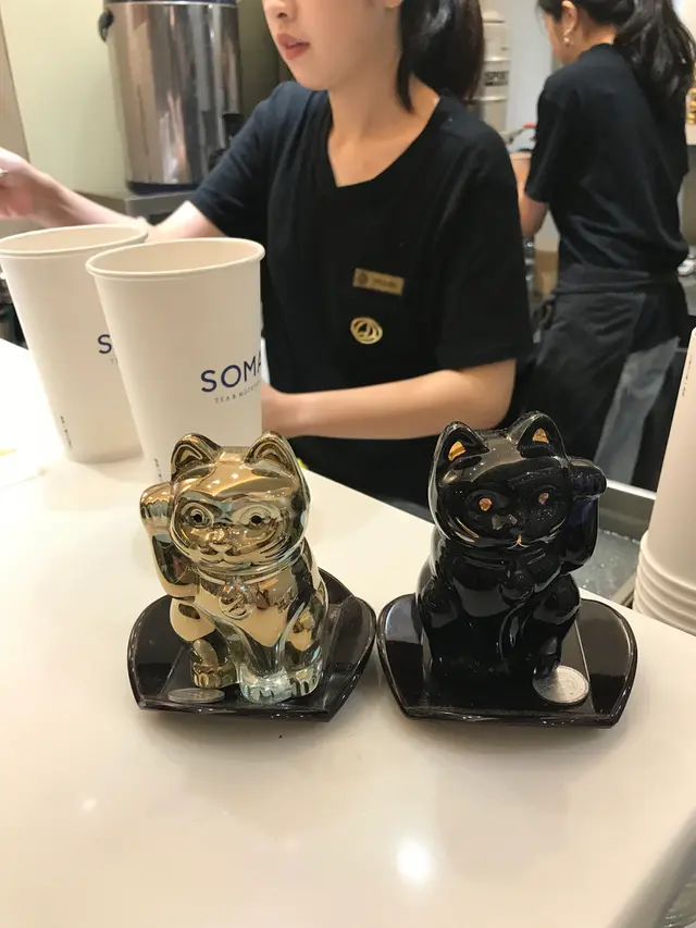 桌上的招財貓是店家的招財吉祥物請勿觸碰喔