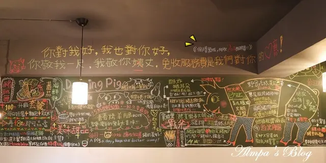 環顧四週可愛逗趣的黑板塗鴉~穿著網襪高跟鞋的豬小姐出沒!!